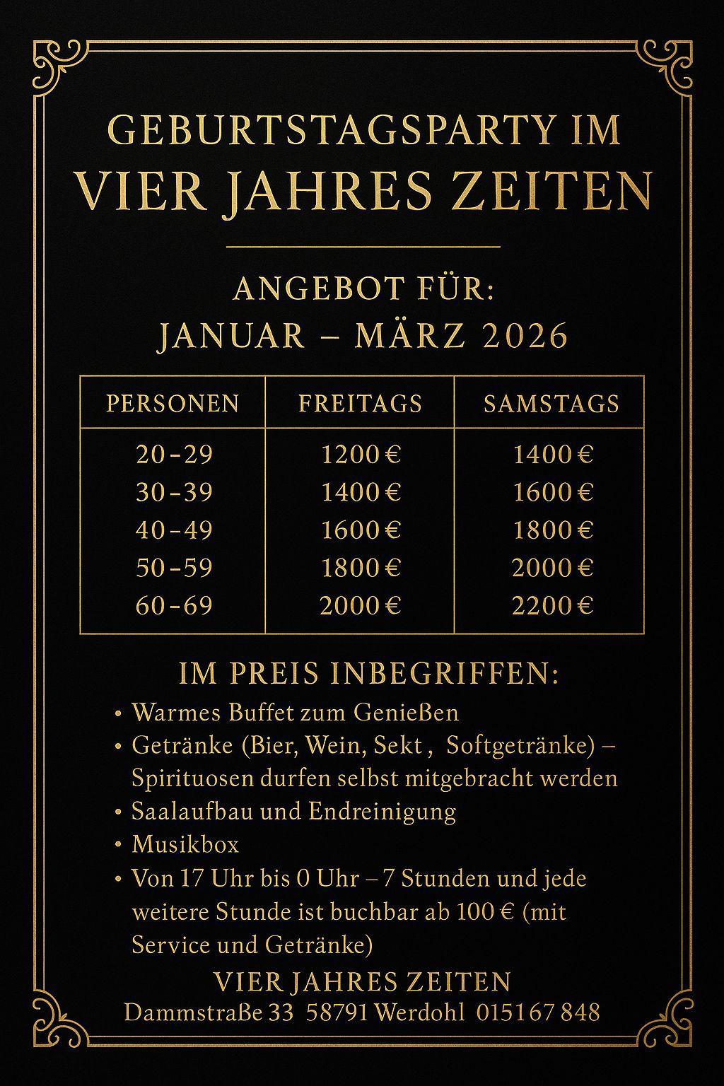 - Hochzeiten – Verlobungen – Geburtstage – Tagungen – Versammlungen